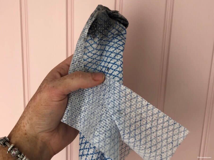 Next, I took a baby wipe and quickly wiped it off because the design is indented, the black paint was left behind.