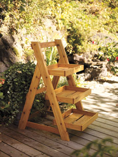 Build this tiered outdoor step shelf to create a display of sun-loving and shade-tolerant plants as a focal point for your deck or garden. The back areas of the lower shelves are protected from the direct sun, and the upper shelves are excellent spaces for upright or cascading blooms.