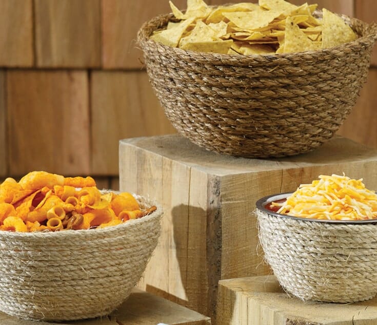 Les bols de service en corde d’inspiration nautique sont un ajout créatif au décor estival.