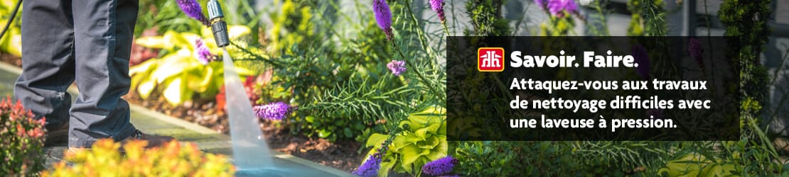 Une laveuse à pression (ou nettoyeur haute pression) est un outil de nettoyage puissant et efficace qui consomme jusqu’à 80 % moins d’eau que la plupart des boyaux d’arrosage tout en étant 50 fois plus puissant. Il suffit de la connecter à un boyau d’arrosage standard qui achemine de l'eau à basse pression vers un moteur électrique ou à essence, qui ensuite pompe l’eau à travers une buse de pulvérisation à une pression extrêmement élevée.