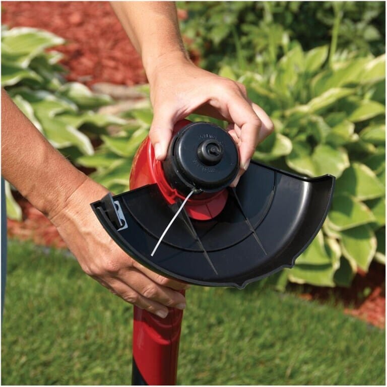 - Un système d’avancement par frappe vous permet de libérer manuellement plus de fil en « tapant » la tête du coupe-herbe sur le sol.