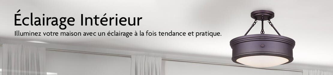 Quels que soient le style et l’ambiance que vous souhaitez créer, vous trouverez parmi nos options un luminaire d'intérieur adapté à tout type d’espace. Apportez la touche finale à votre chambre ou salle de bains, ou offrez-vous le luminaire élégant dont vous rêviez pour votre salle à manger. Découvrez notre sélection de luminaires d'intérieur à DEL et de luminaires à basse tension si vous cherchez à réduire votre consommation d’énergie ainsi que votre facture d’électricité. Si vous souhaitez rendre votre maison plus sécuritaire, envisagez un éclairage intérieur pour escaliers, qui améliorera la visibilité pendant la nuit.