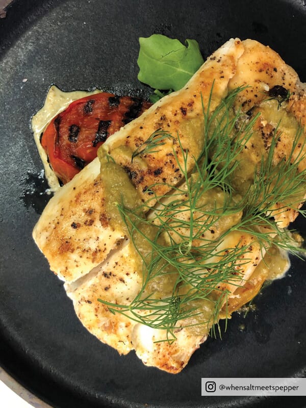 Le flétan est un poisson tendre et floconneux au fini juteux lorsqu’on utilise la cuisson sous-vide. Si on met le flétan préalablement dans une saumure sèche, on créera un plat encore plus juteux. La sauce aux poireaux et à la moutarde fournit un accompagnement qui ajoute une richesse nécessaire et une texture veloutée.