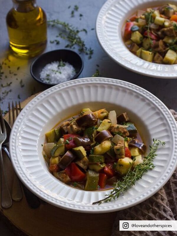 Cette recette prend les composants traditionnels d'une ratatouille française et les fait cuire ensemble dans un bain-marie. Les saveurs s’y combinent pour créer un plat savoureux. La ratatouille est essentiellement un ragout sans viande. Les légumes comme les courgettes, les poivrons et les courges sont sensibles à la cuisson à haute température. Elles ont tendance à se dégrader avec la chaleur élevée. L'application d'une température basse uniforme qu’offre la cuisson sous-vide permet aux légumes de garder leur forme après la cuisson et les empêche de se transformer en bouillie.