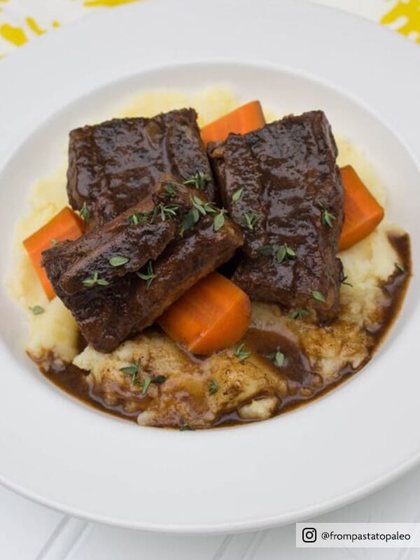 - Retirer les sacs du bain-marie, retirer les côtes de bœuf et les carottes et les placer sur un plat de service.