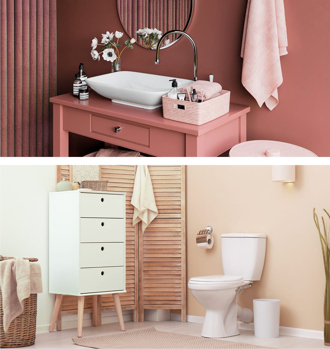 Créez une salle de bain d’inspiration spa avec ce duo de peintures apaisant et réconfortant. La variation de chaleur