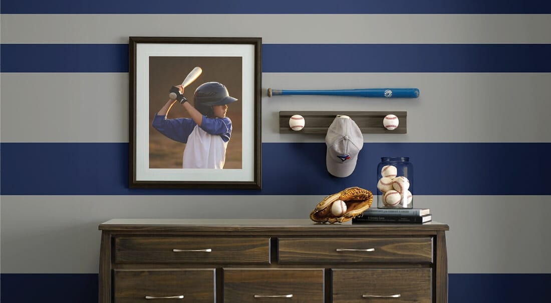 Ce symbole indique les couleurs iconiques bleu, bleu marine et rouge de l’équipe des Toronto Blue Jays.